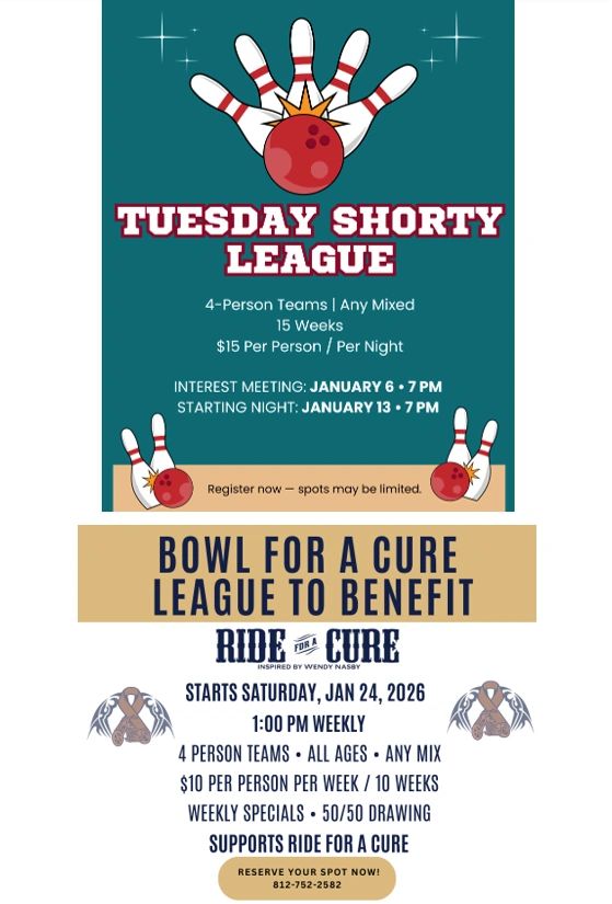 Join the Tuesday Shorty League for fast-paced, fun competition, or bowl for a great cause in our Bowl for a Cure League, benefiting Ride for a Cure. Whether you’re here for the game, the community, or giving back, January has a league for you.